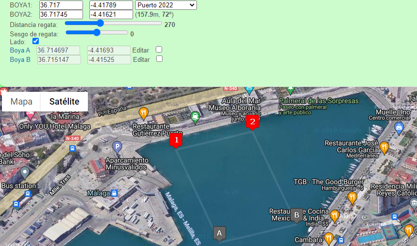 En ocasiones puede ser útil precalcular dónde van a caer las boyas de la segunda línea. Por ejemplo, si el campo de regatas debe ser muy preciso en distancia y sesgo, o si está muy